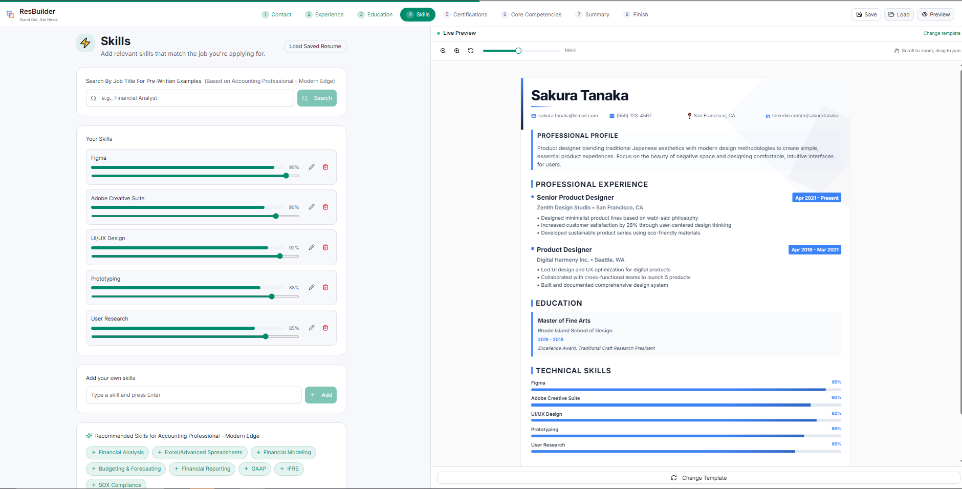 - Type your job title → AI suggests perfect skills