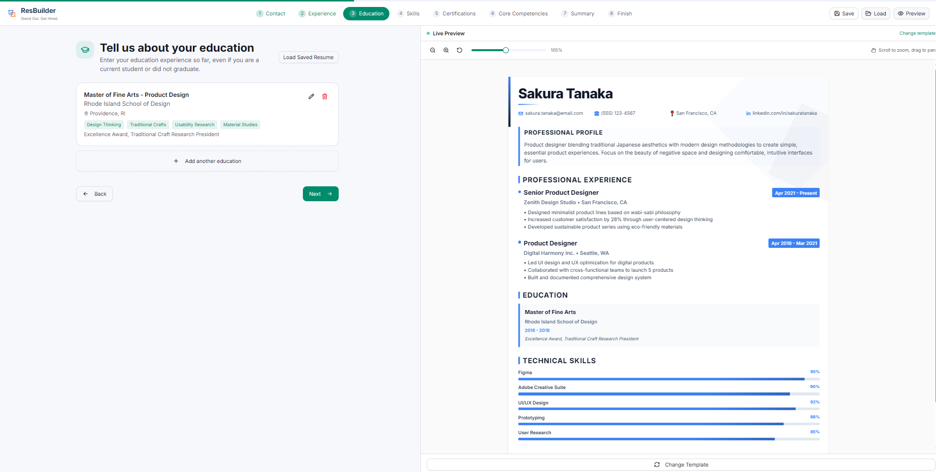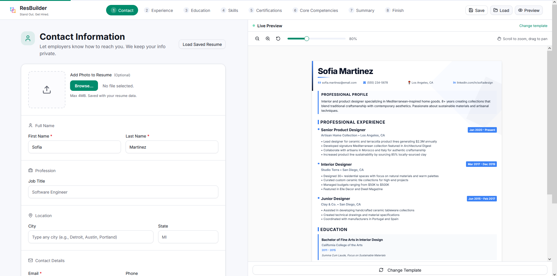 - Load Saved Resume → pick up where you left off
